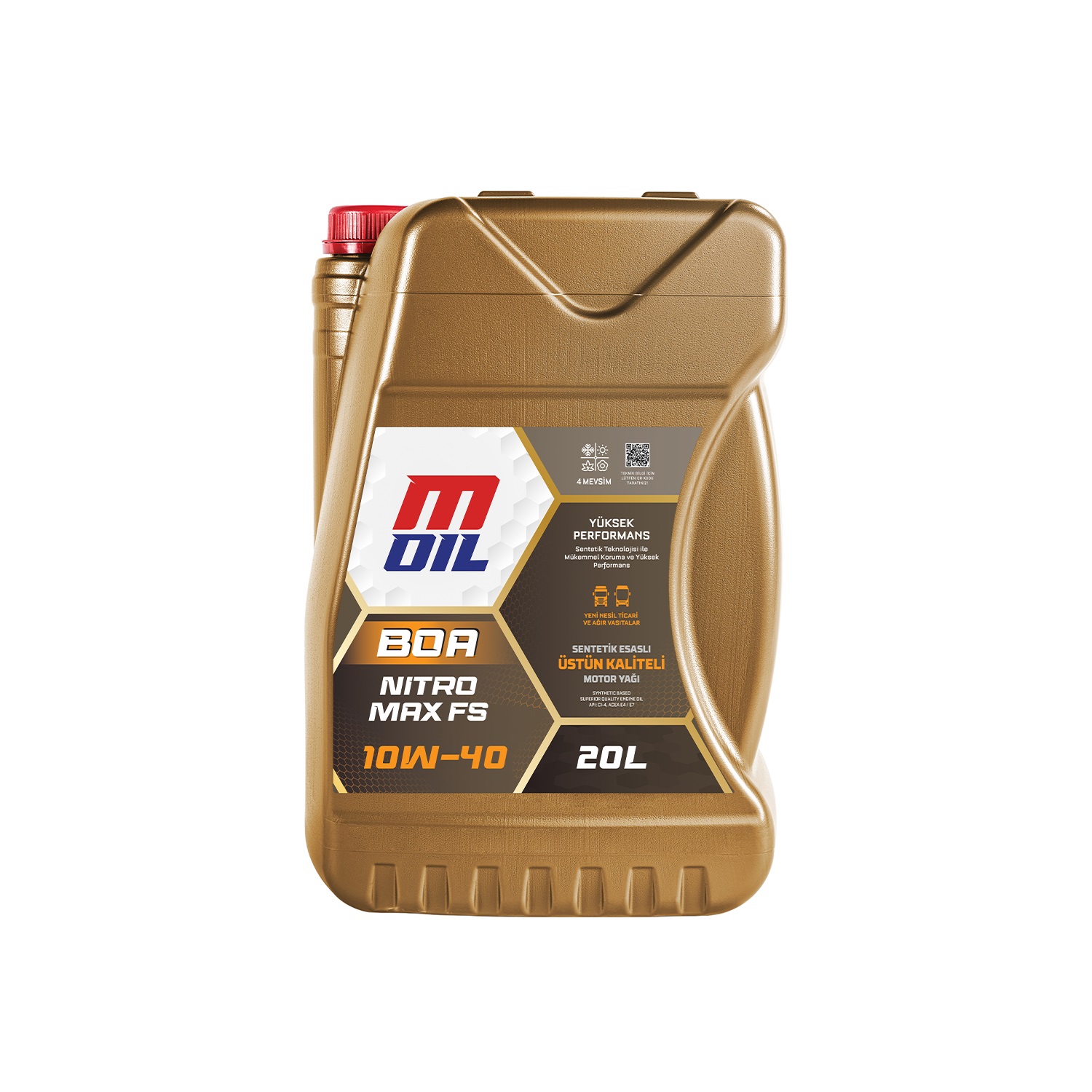 Turboşarjlı veya doğal emişli modern dizel motorlar için ileri teknoloji ürünü performans katıkları ve sentetik baz yağlar kullanılarak üretilmiş yüksek performanslı dizel motor yağıdır. Otobüs, kamyon ve iş makinalarında her türlü yol ve hava koşulunda mükemmel koruma sağlar.Yağ değişim süresini uzatır, yakıt tüketimini azaltır.
